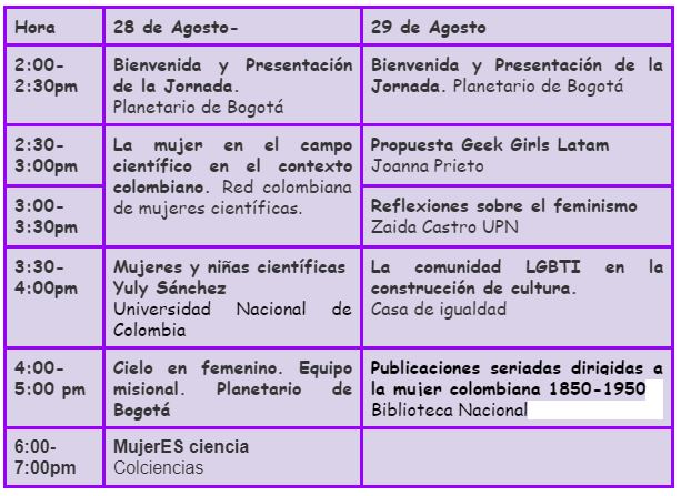 Conoce la agenda de este 28 y 29 de Agosto y acompáñanos en el Auditorio Principal del Planetario de Bogotá.